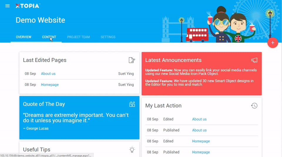 Note: You can turn any page into a section folder in XTOPIA without losing the page you have designed.