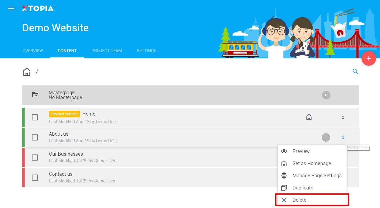 Note: You are not able to retrieve your pages from the system once they are deleted.