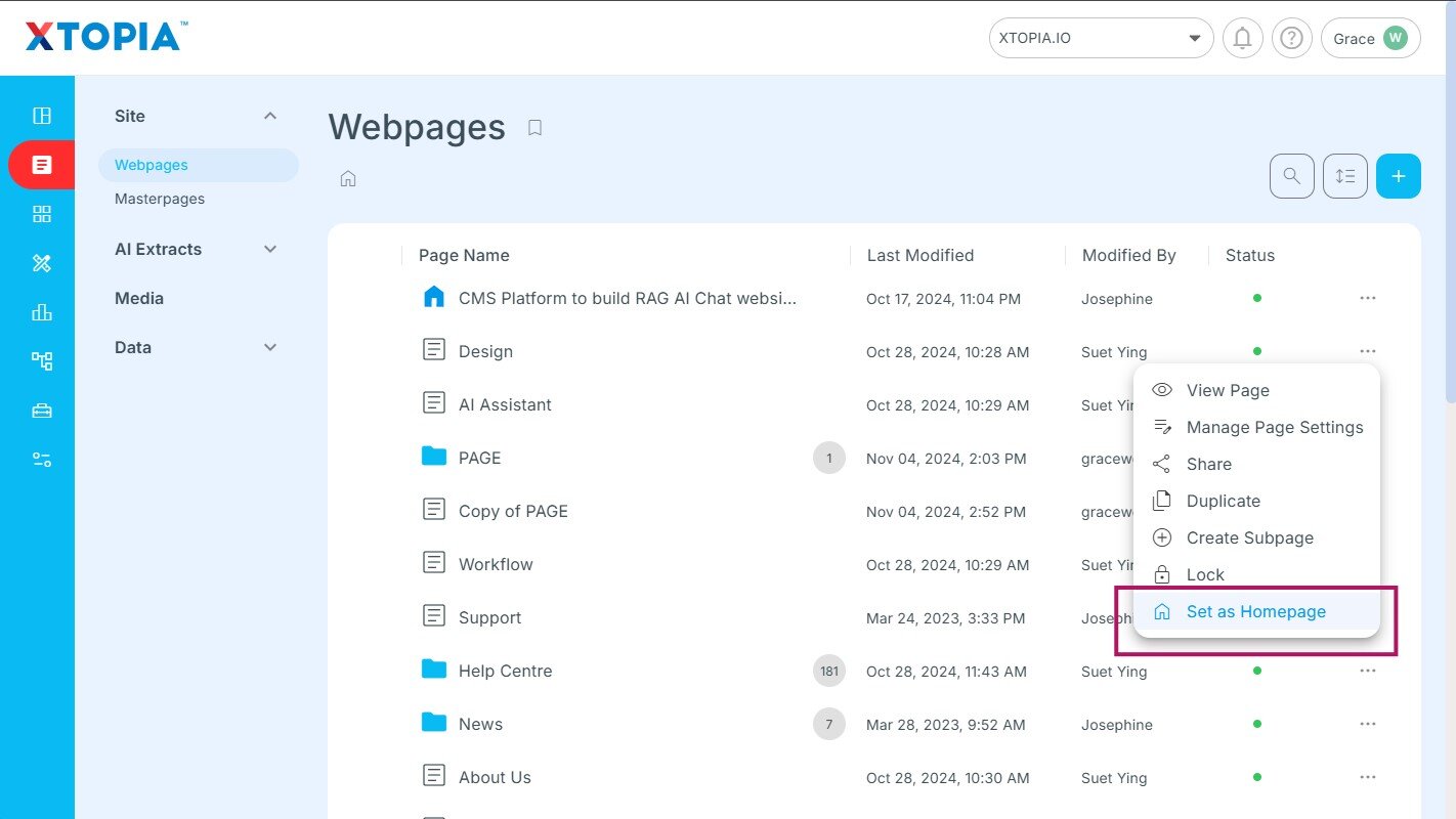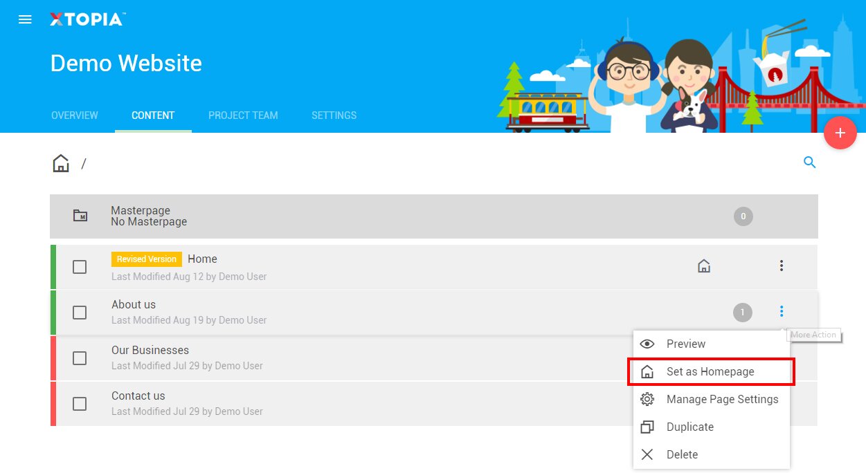 Note: You are not allowed to choose Masterpages as your Homepage.
