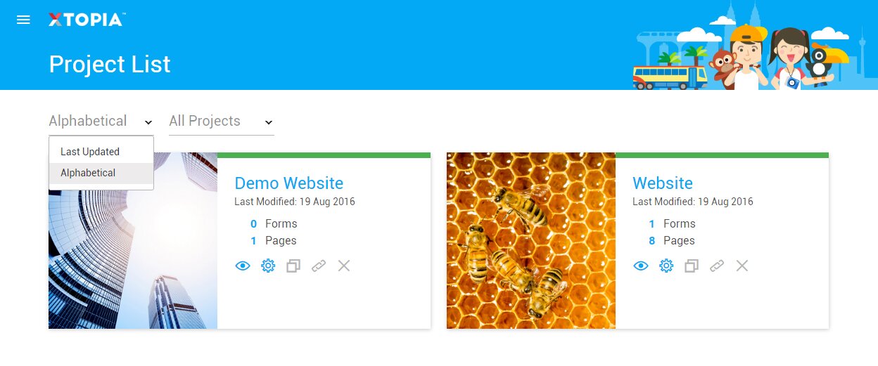 Filter the project list by the alphabetical order.